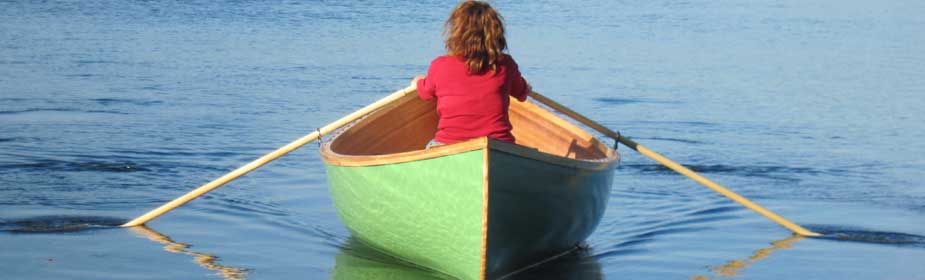 You can see from the pictures that we painted the outside of the hull, while keeping the natural wood interior. However, if you prefer the look of the natural wood strip, you can by all means finish it as you would any of the other wood strip boats on this site. When you have seen as many wood strip boats as we have, a little color shakes things up a bit. For the record, the color is "Pea Green".