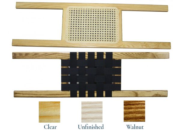 The 1-1/2" polypropylene webbing makes this seat a durable and weather-resistant option, even when exposed to harsh elements for extended periods of time, with less care and maintenance than a traditional caned seat. This seat is currently offered in a clear gloss or walnut stain.