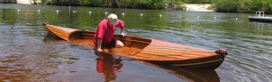 Building the Bay Hawk is likely an experience that you will not soon forget; paddling her is an experience that you will never forget. This boat is fast, tracks well and doesn't mind a little chop. It is well suited for lakes or protected bays. The sleek hull lines with a darted entry, protruding outer stems and lack of rocker makes this boat want to go forward in a hurry. Unlike a traditional open canoe (such as Companion), this boat was designed to use a double paddle or kayak paddle (similar to Little Rob) to propel it forward. The paddler sits on a cushion right on the bottom of the boat, giving the boat a low center of gravity and the paddler a high degree of confidence.